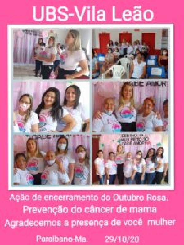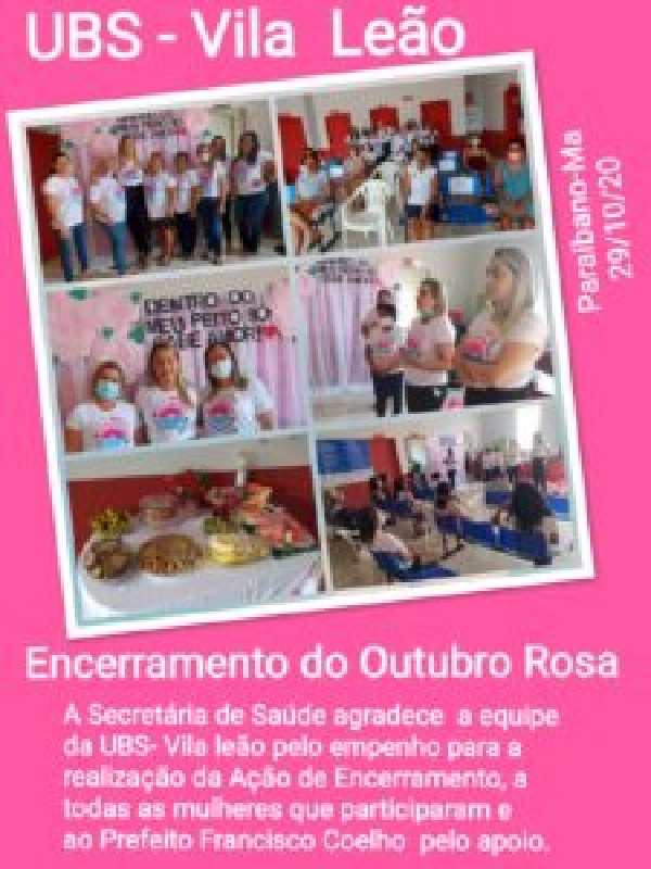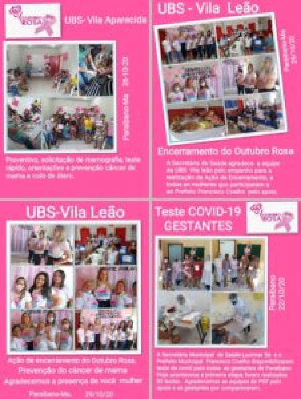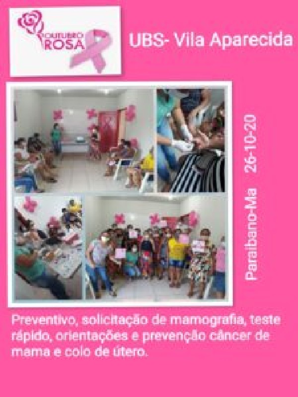 No final deste mês de outubro várias UBS e PSFs promoveram palestras e realizaram a Campanha Outubro Rosa que fechou com uma caminhada de sensibilização, nas ruas da cidade com a presença do prefeito de Paraibano Francisco Noleto, da secretária municipal de saúde de Paraibano, enfermeira Lucimar Sá e da coordenadora da atenção básica, enfermeira Francijany Revil, de enfermeiros, técnicos e agentes comunitários de saúde e população.